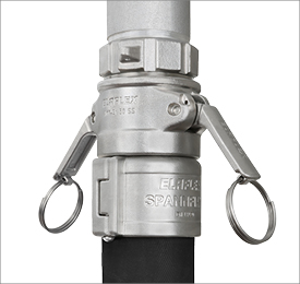 Elaflex has been manufacturing since 2016 'Camlock' couplings – 100% guaranteed to EN 14420-7 standard. Until now male and female couplings (with female thread or integrated hose tail) as well as dust plugs and caps have been available in stainless steel, DN19-100. Starting in the second quarter 2017 the existing Camlock product range from own production will be expanded to include all types and sizes in brass and then in the third quarter 2017 dust plugs AVB and caps AMB in aluminium. In the Autumn of 2017 a special version EASYLOC in stainless steel will be available. This female coupling incorporates a lever lock in sizes DN 19-50. It prevents accidental lifting off the levers for example when subjected to vibration. |