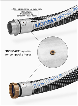For a safe and smooth operation of 'ASS', 'QSS' or COP systems with composite hoses, Dantec as a member of the Elaflex group has developed the 'COPSAFE' System. This system is field proven and complies with EN 13765 and the international electrostatic standard requirements.