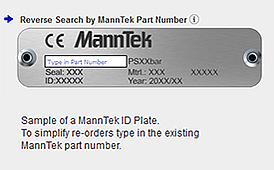 The MannTek part number is always laser marked on the 'ID Plate' of each product. Users can directly type-in the number into the search field to find an identical product.