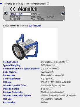 The configurator for MannTek products now also provides the option to search by the part number ('Reverse Search').