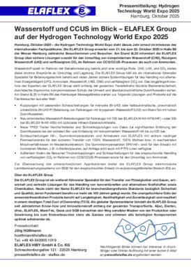 Hamburg, Oktober 2025 – die Hydrogen Technology World Expo steht dieses Jahr erneut im Interesse des internationalen Fachpublikums. Die ELAFLEX Group erwartet vom 21. bis zum 23. Oktober 2025 in Halle B6 der Messe Hamburg zahlreiche Besucherinnen und Besucher. Am Stand 6L20 informiert die ELAFLEX Group über sichere Lösungen sowohl für den Umschlag von komprimiertem Wasserstoff (CH2), flüssigem Wasserstoff (LH2) und verflüssigtem CO₂ im Rahmen von CCS/CCUS-Prozessen als auch von Ammoniak.
